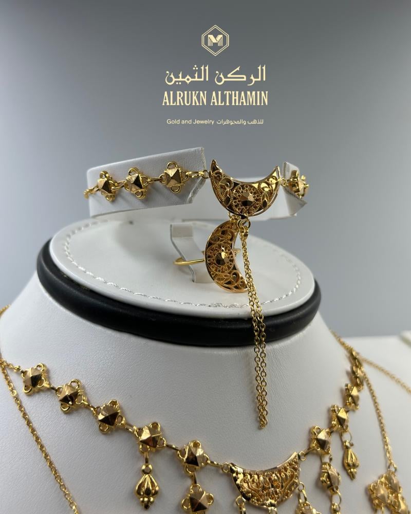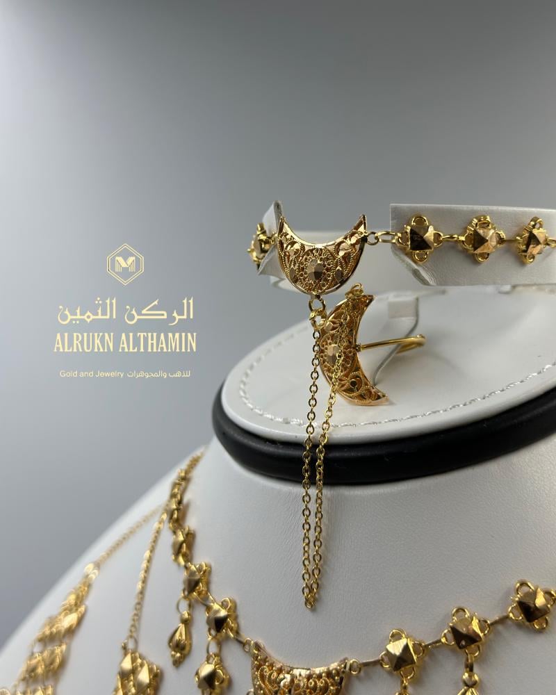 تألقي بإطلالة ملكية لا مثيل لها مع طقم ذهب ملكي عيار 21، المصمم بعناية ليجمع بين الفخامة الكلاسيكية واللمسة العصرية الراقية. يتميز الطقم بتفاصيله الدقيقة ونقوشه الفاخرة التي تعكس الذوق الرفيع، كما يُصاغ من ذهب نقي بعيار 21 ليمنحك لمعانًا أخّاذًا يدوم.
