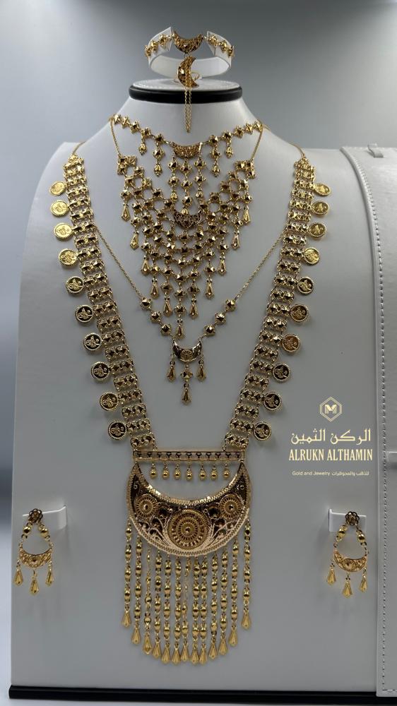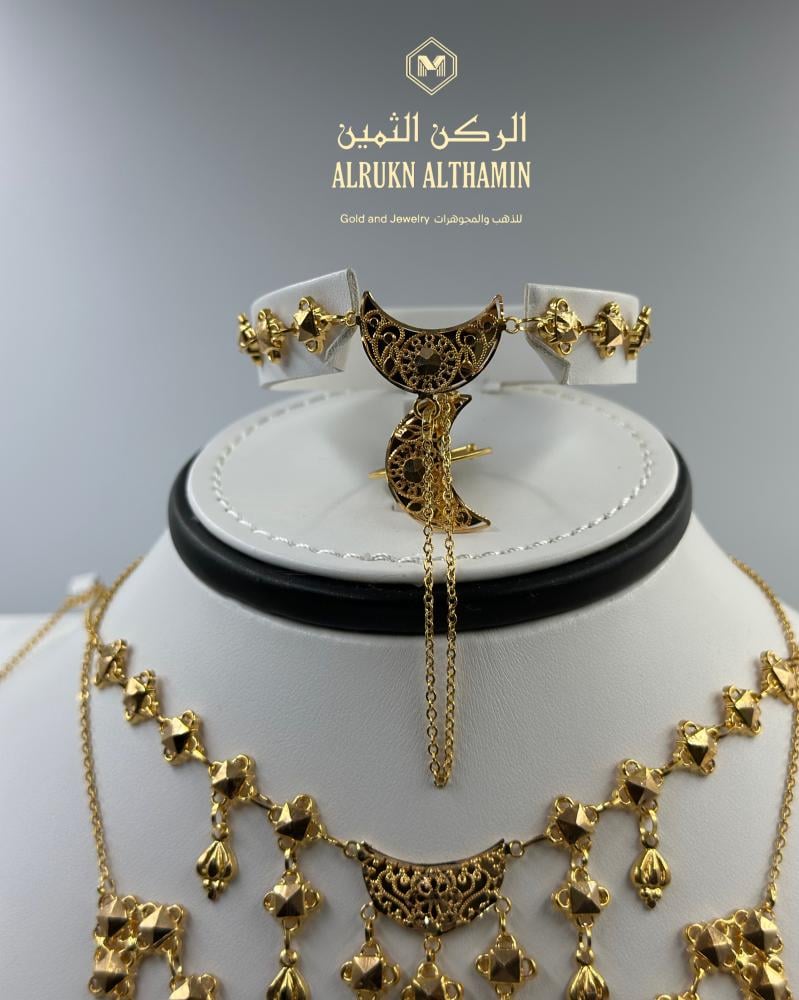 - يشمل الطقم: عقد، حلق، سوار، وخاتم